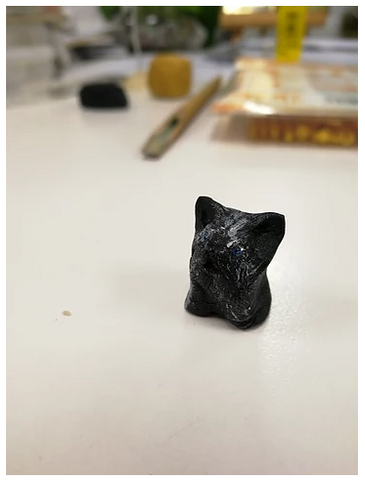 One of my earlier test models was this little black terrier. For this model, I got my hands dirtied with black acrylic in the attempts of kneading it into the clay to give it that pure look. This model stands at the height of 2.5cm, so I can assure that I pretty much surprised myself in making such fine details to such a miniature figurine. One thing about this clay is the time it took to harden – close to 24 hours for it to harden but once left for a week more, its rock solid! The finalising details were hand-painted with acrylic paint.