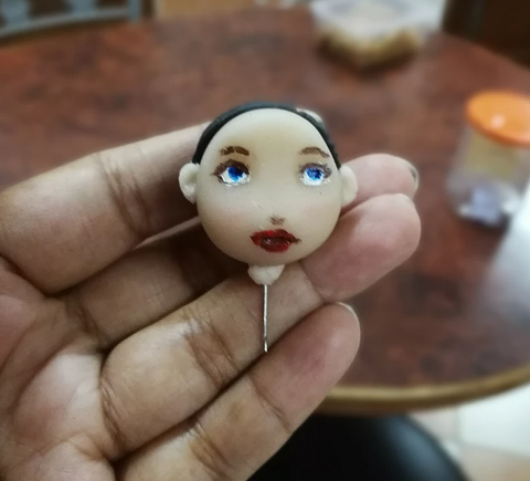 To kickstart it all, I started with modelling her face and for this and her arms and legs, I used my own concoction – cold porcelain. Now this substance is a homemade clay, made only of things you can find around your kitchen and can also be made in two ways – cooked or non-cooked. I decided to explore the non-cooking method as one of my major problems is patience. So one fine night, in the quiet of the night, I mixed the very last ounce of corn flour from my mother’s pantry, the very little balance of modge podge, some plain flour, a touch of white vinegar and a dash of olive oil. Using my bare hands, I rubbed on some oil to my hands and dug into the substance to mix it all. Once it was kneaded into a pretty soft dough, I tucked it into some cling-wrap and air-locked it into a ziplock, ready to be used by morning.