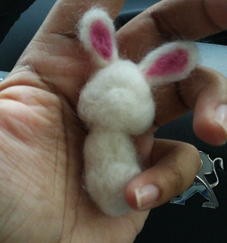 Coming back to Mer-bunny Kit, instead of plunging myself into eternal damnation of stabbings, I decided to look up YouTube to see if there have been others who have attempted this kit. Lo and behold! There were many others which included one by Daiso too! I ran the video a couple of times just to digest how needle-felting works and it was precisely then did I realize that I lacked one more item! A foam mat to work as the stabbing work-space. So looking around my house, I substituted it with a dishwasher’s sponge and it worked perfectly well!
