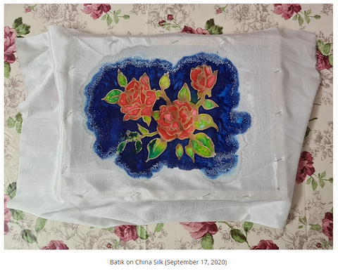 Moving onwards, taking full advantage of the extra time I know have – more exploration and experimentation was given to enhancing my other skills. In the case of batiking, I found the time to play with the dyes and fabrics – good and bad results as I found that I can’t really use salt on China Silk just as I would on Cotton or Rayon. As salt has the ability to soak in the water, it also has a tendency scar the fabric so lesson learned here.