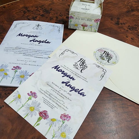 Now that the invites where being flown off by Hedwig and the owl crew, it was time to work on items for the actual day – booklet covers for the Church Wedding Mass; little favor boxes to contain the traditional fruit cake (a homebaked courtesy of a family friend) and a little surprise that I kept silent until the week before their wedding – a splash screen design.